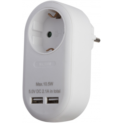 Aдаптер 1 гнездo шуко и 2 USB.