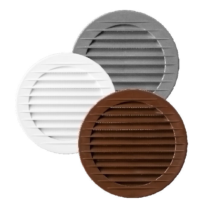 Кръглите вентилационни решетки с мрежа са проектирани както за външен, така и за вътрешен монтаж. Предимството на тези вентилационни решетки е мрежата, посравена още на етапа на производство, която държи насекомите далеч от жилището, като тя не се замърсява, не се чупи, не се поврежда и е в цвета на решетката – запазва трайно естетическата си стойност. Формата „жалуза“ насочва въздуха „надолу“, така че помещенията, в които е разположена решетката, не създават охлаждащ ефект.
