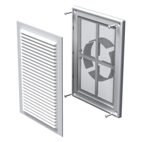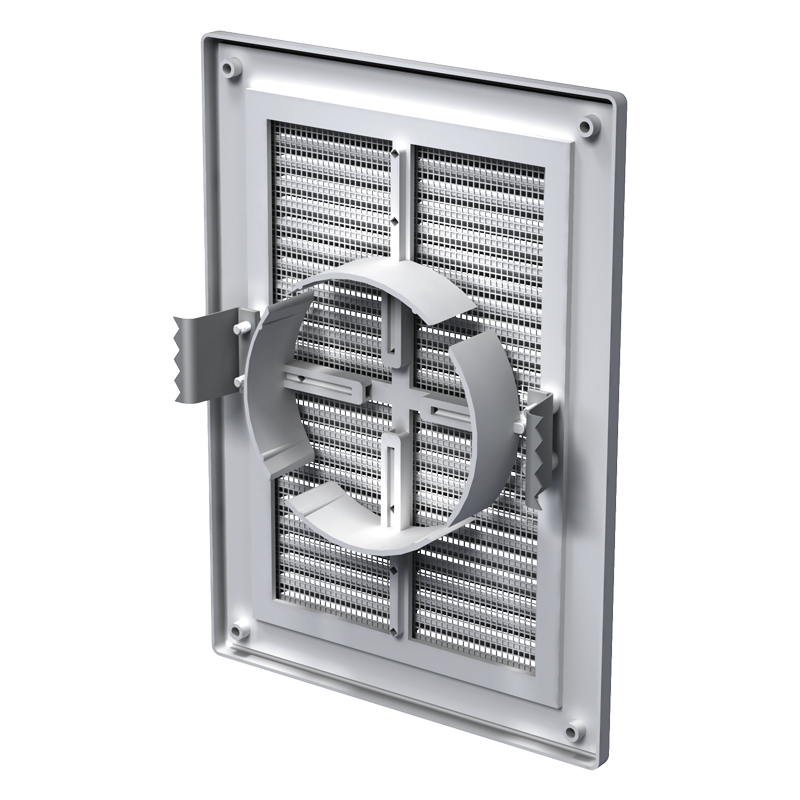 Пластмасова вентилационна решетка, за управление на въздушния поток при вентилационни, климатични или отоплителни системи. Монтаж на стена или таван. Многоелементна структура. Вътрешната част е фиксирана към основата с ключалки за лесно почистване без разглобяване. Закрепване на винтовете.