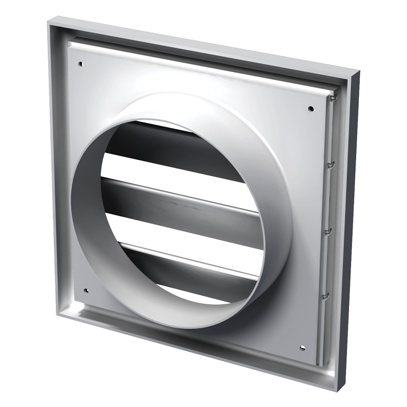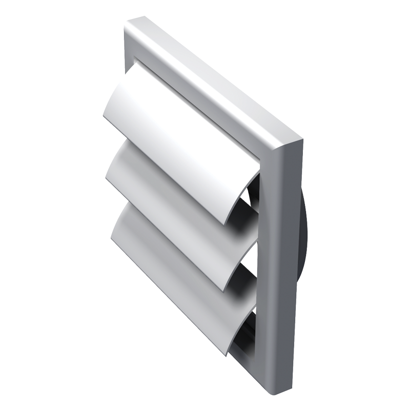 Пластмасова вентилационна решетка, за кръгли въздуховоди, за управление на въздушния поток при вентилационни, климатични или отоплителни системи. Монтаж на стена. Многоелементна структура. С жалузи за предотвратяване навлизането на въздушния поток обратно. Закрепване на винтовете.