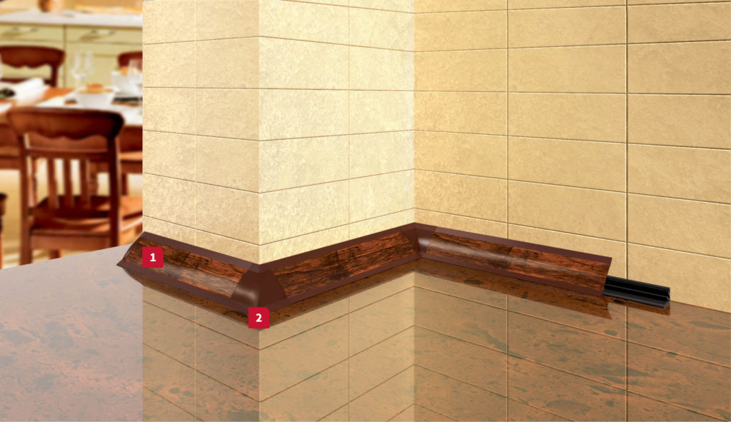 Изпъкнала водобранната лайсна се използва за предпазване на кухненския плот и долният ред шкафове от проникването на вода. Най – често се монтира между кухненския плот и кухненския „гръб“ с помощта на винтове за дърво и силикон. Дълга е 3м, а широка 21.5мм. Предлага се в два основни цвята – бял и алуминиев.