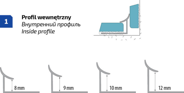 Този профил представлява завършек на вътрешните ъгли, маскиращ естетически неравномерните ръбове на керамичните плочки. Височина 10мм, дължина 2.5м.