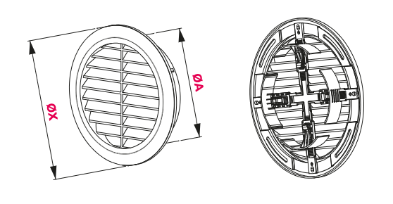 Вентилационните решетки са неразделни елементи на вентилационна система. Работата й като цяло зависи от правилния избор на компонентите за контрол на движението на въздуха във и извън помещението. Широката гама от вентилационни решетки и модерният им функционален дизайн, позволява намирането на оптимално решение за всеки интериор. Използването на висококачествена суровина осигурява дълготрайност на продуктите, работещи вътре и извън помещенията. Вентилационните решетки се предлагат в различни размери с кръгла форма. Инсталираната найлонова мрежа предпазва вентилационните канали от навлизането на различни насекоми.