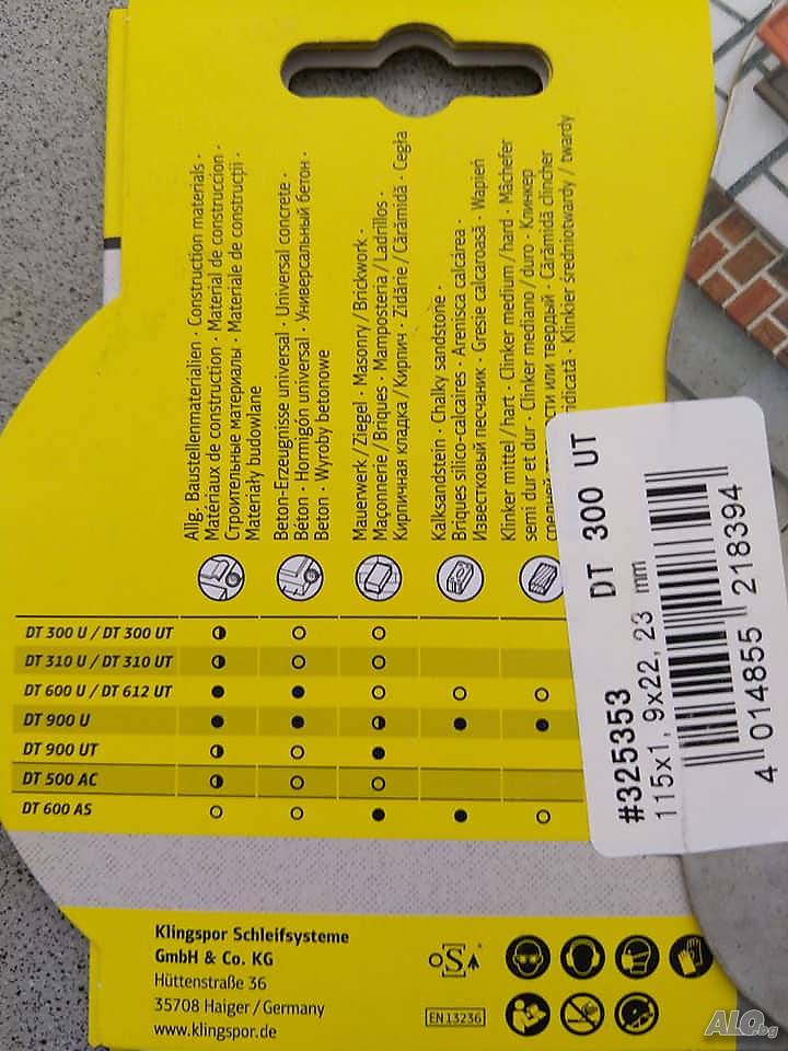 115х1.9х22.23325353, 125х1.9х22.23 325354, 230х2.5х22.23 325356