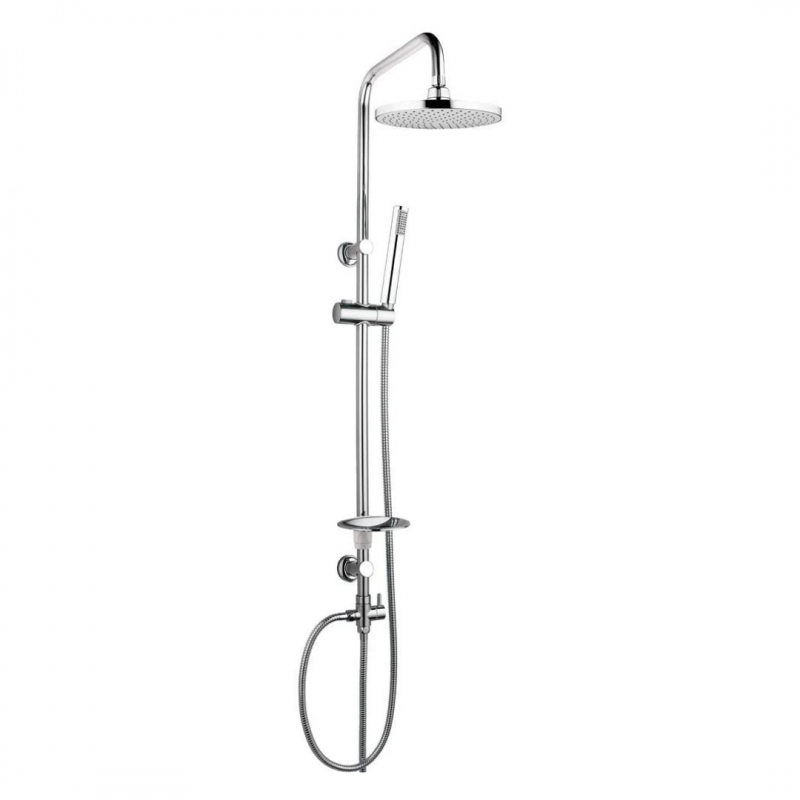 Елегантна душ колона с полирана хромирана месингова конструкция и душ глава от неръждаема стомана с намалена дебелина и кръгла форма с диаметър 20 см и дюзи против котлен камък. Колоната е оборудвана с двупосочен механичен смесител и регулируема горна опора и адаптивни крепежни елементи, позволяващи монтаж на колоната на мястото на съществуваща. Доставя се в комплект с минималистична цилиндрична душ глава и 150 см гъвкав сребрист PVC маркуч.