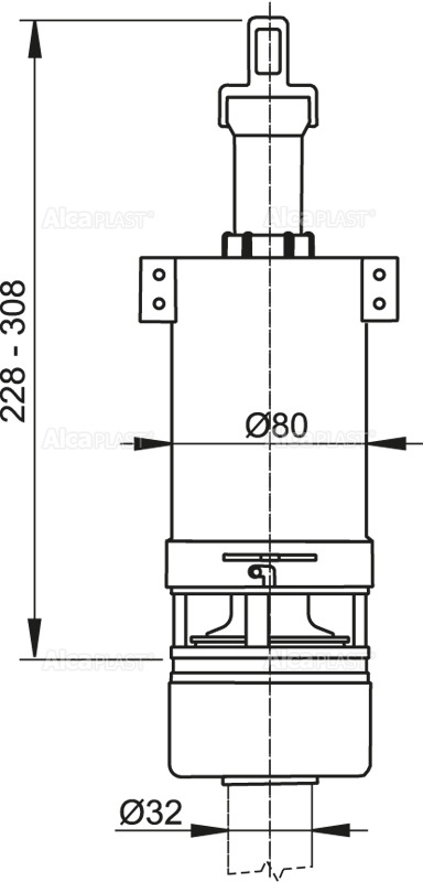 Диапазон на регулиране на височината 315 – 450 мм Дизайнът позволява оптимално регулиране на височината на клапана според височината на казанчето Материал: ABS Изход Ø60 mm за монтаж в казанче с диаметър на изхода за свързваща тръба Ø32 mm