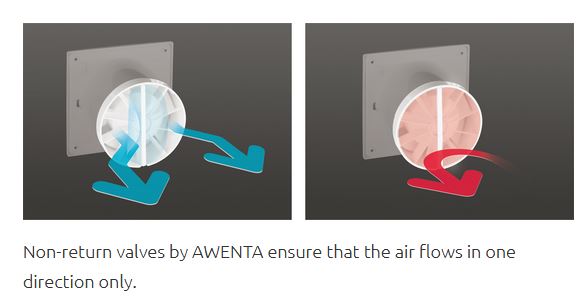 Клапа за вентилатор с различни диаметри – 100, 120, 125. Може да се използва за някои модели вентилатори Awenta.