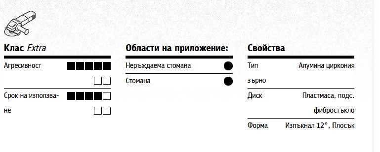 Предимства: Универсален продукт за обработка на стомана и неръждаема стомана – Добра производителност при употреба с ъглошлайфи от всички класове – Без гланциране, дори и при слаб натиск на работа.