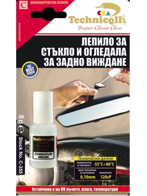 Висококачествено лепило за трайно свързване на стъкло и метал. Устойчиво е на UV лъчите, влага, температурни влияния и на действието на повечето химични вещества. Четката, която е прикрепена към капачката, осигурява удобство при работа и дава възможност да се покрият по – големи повърхности и труднодостъпни места. Включената специална подложка, амортизираща трептене, се използва при монтаж на огледала за задно виждане към автомобилните стъкла и навсякъде, където слепваните елементи са изложени на триене.