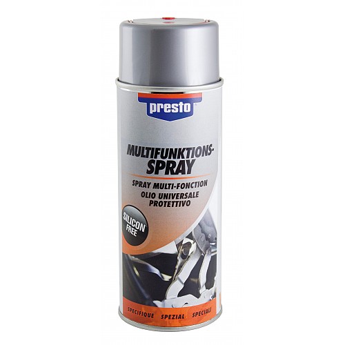 Универсална висококачествена смазка за обработване на части от метал и пластмаси без съдържание на силикон. Разхлабва клеясали, ръждиви винтове и премахва остатъци от масла, смоли, вакси и лепила. Спреят притежава висока проникваща способност и почистващ ефект. Отблъсква влагата и защитава от корозия. Температурна устойчивост от -50°С до +250°С. Подходящ за всякакъв вид поддръжка в дома и работилницата.