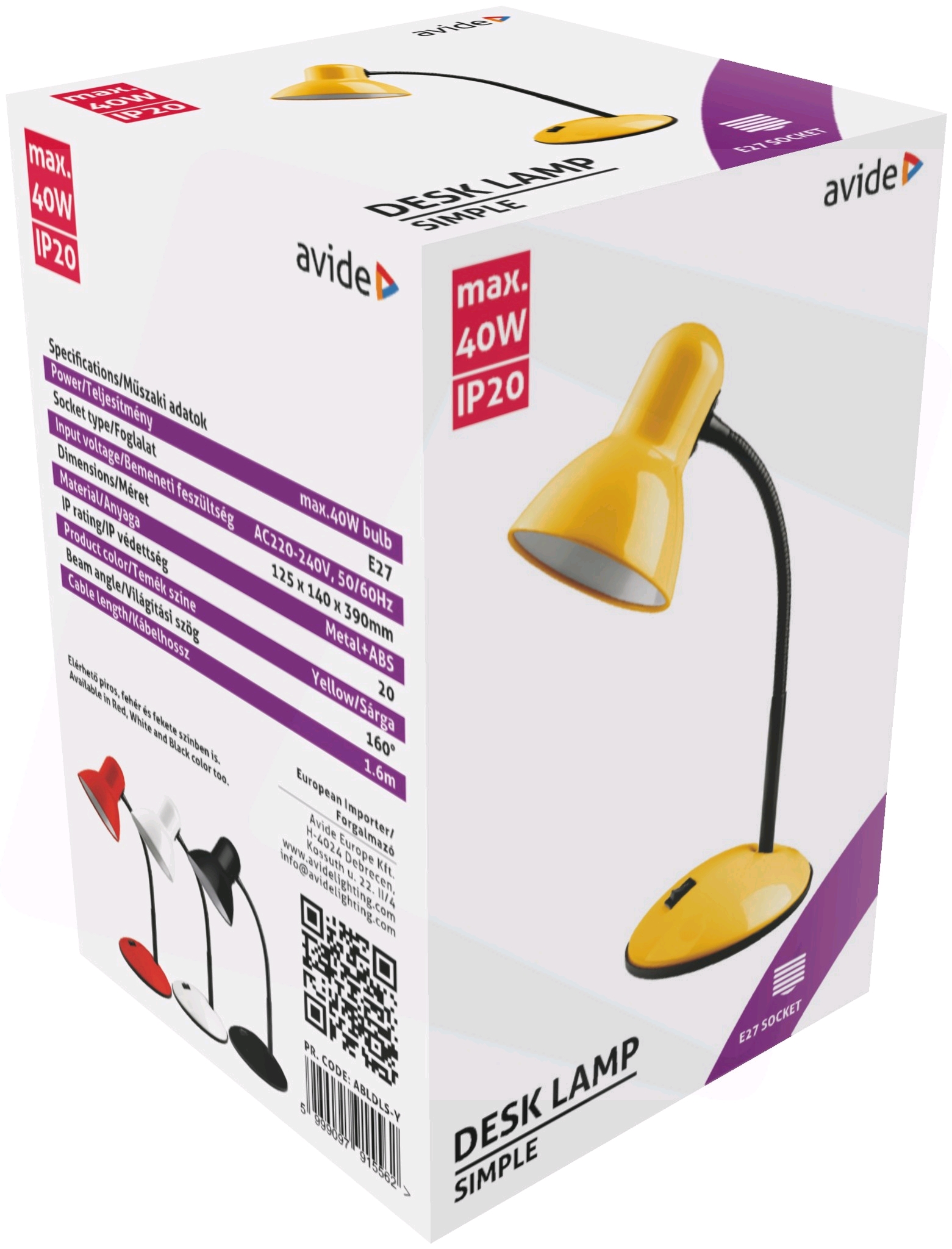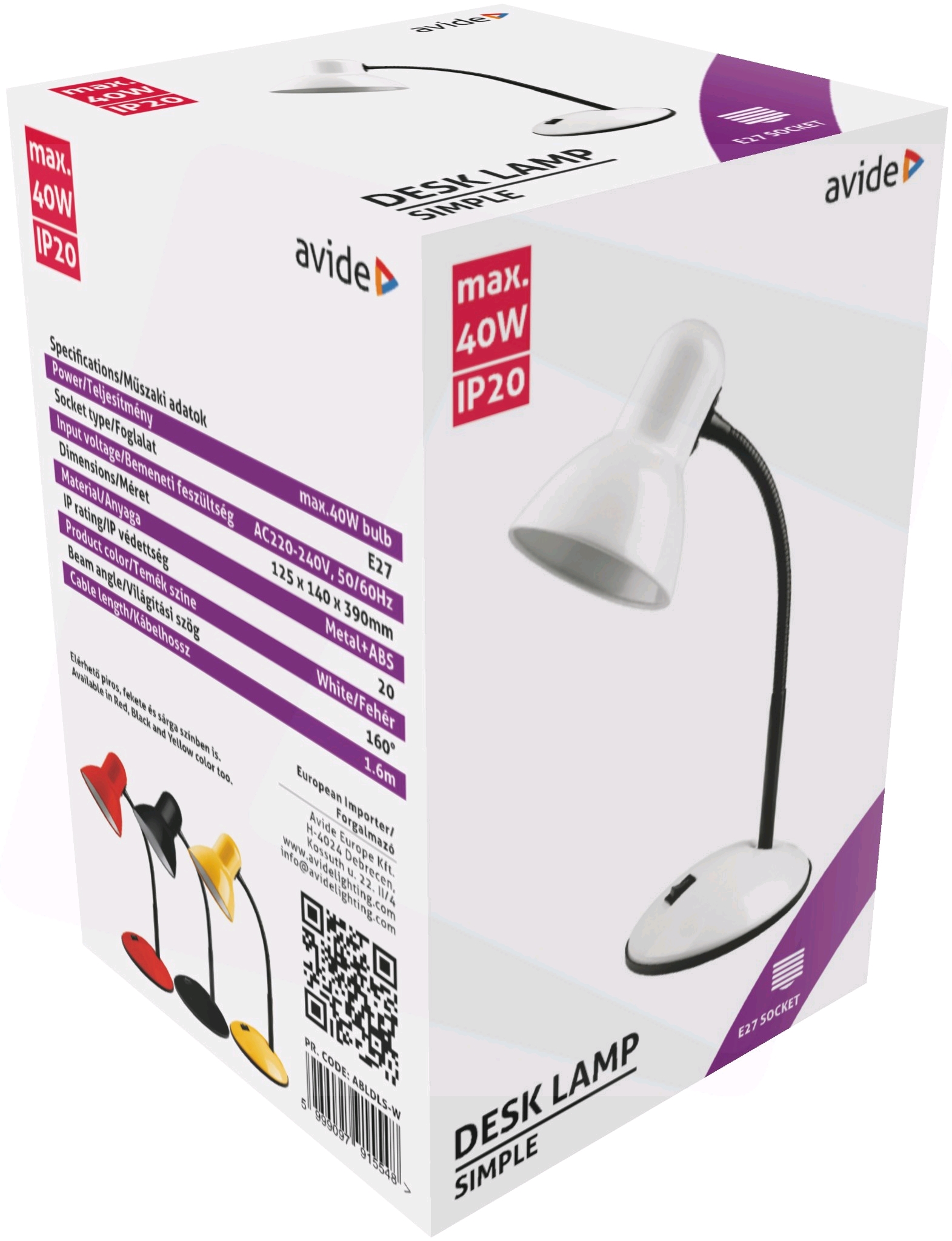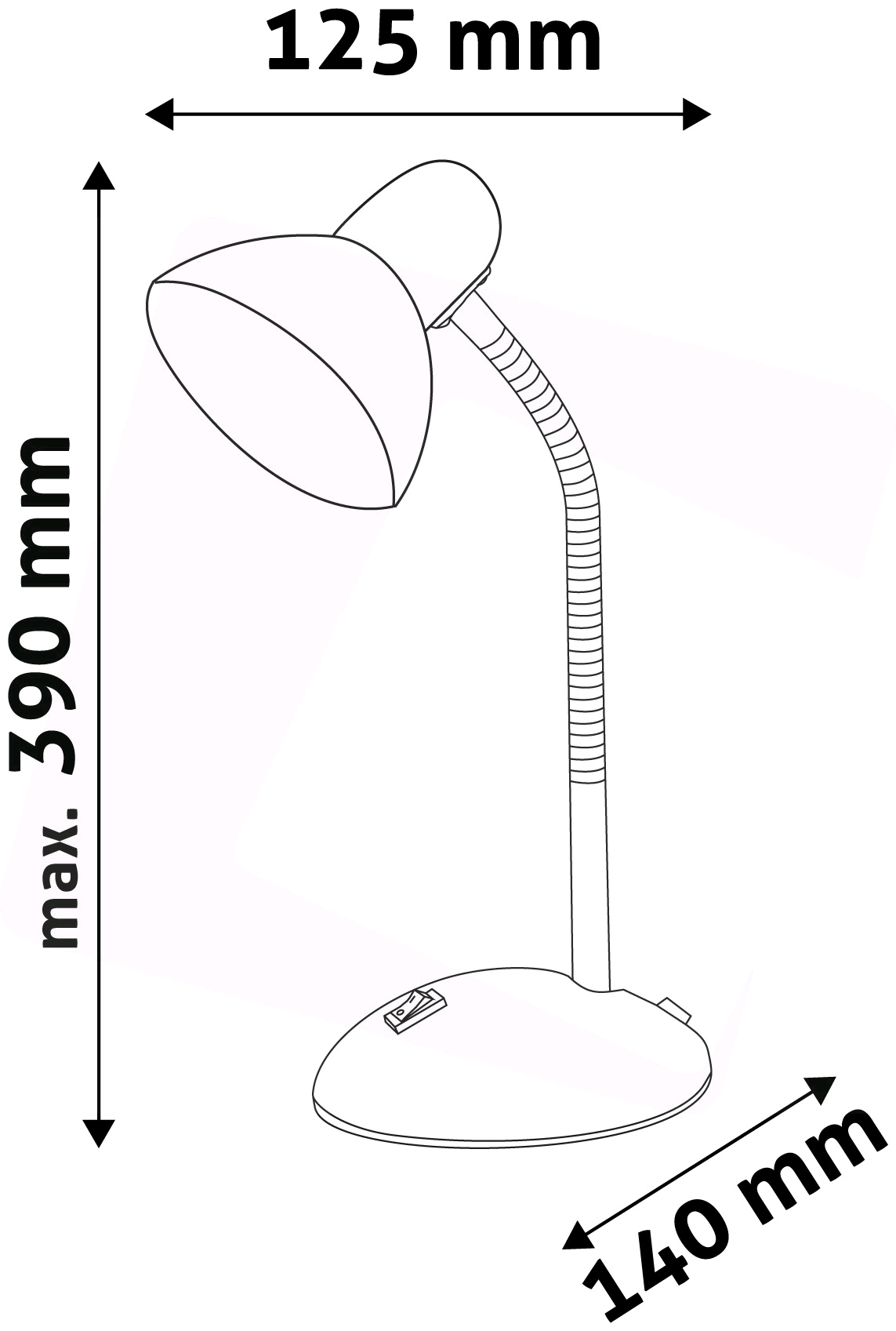 Настолна лампа с максималната мощност на крушката до 40w. Работи с крушки с цокъл Е27.