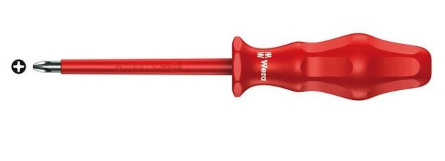 Изолирани отвертки за работа под напрежение до 1000V със закален Wera Black Point връх, двукомпонентна ръкохватка Kraftform и маркировка на ръкохватката.