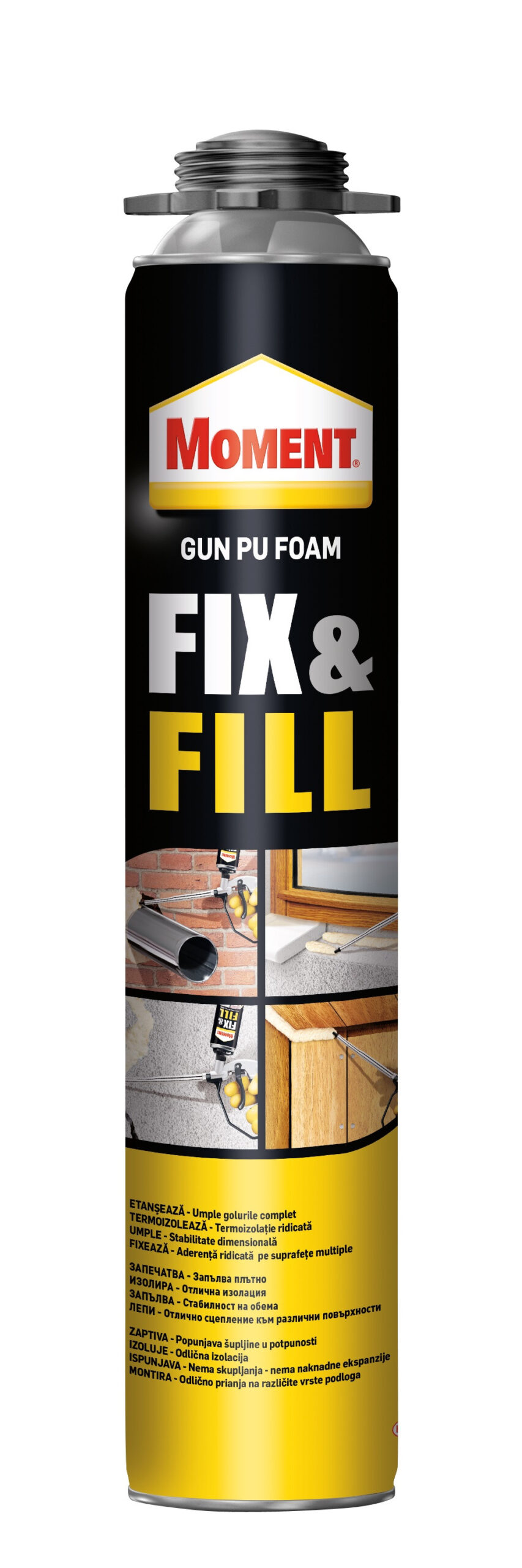 Многофункционалена полиуретанова пяна, която е идеална за монтаж и изолация на рамки на прозорци и каси на врати, запълване на отвори и кухини и много други. Пистолетната пяна на Moment е еднокомпонентна, използва се с пистолет и има силна адхезия към дърво, бетон, камък, метал и много други материали. В допълнение, полиуретановата пяна Moment осигурява добра топло- и шумоизолация.