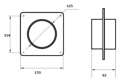 Предназначен за свързване към вентилационна шахта на въздуховоди със диаметър 125мм. Монтажа се извършва с дюбели.
