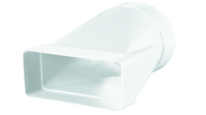 Предназначен за преход от плосък от и към кръгъл въздуховод, с размери ∅100-55×100.