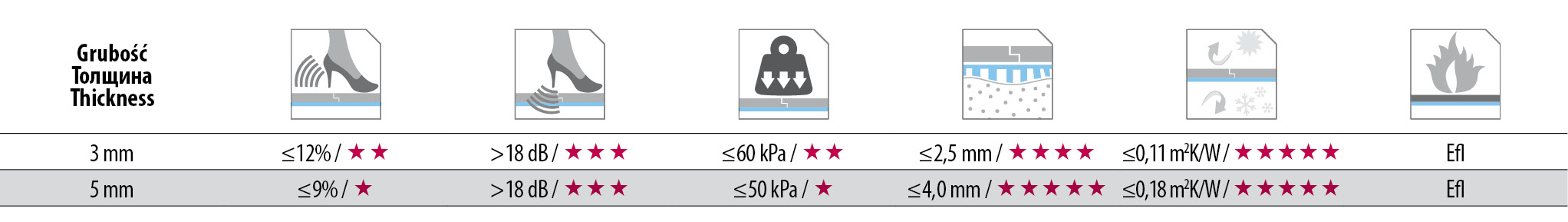 Подложката за паркет е изработена от екструдиран полистирол (XPS). Чрез нея се изравнявяват неравностите на пода, има висока якост на натиск и заглушава шумевете при ходене. Продава се като единични листове с площ 0,56 м2 и дебелина 5 мм. Листовете осигуряват лесно подравняване и бързо полагане. Предназначена е за всички видове подове.