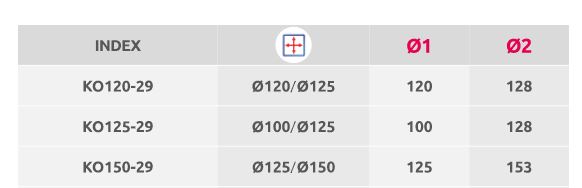 Изработени от висококачествен ABS, в размери, съответстващи на вентилационните канали Ø100 mm, Ø120 mm, Ø125 mm, Ø150 mm и Ø160 mm.