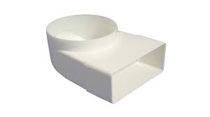 Осъществява преход под ъгъл от 90° между плоски (110х55мм ) и кръгли въздуховоди (Ф100).