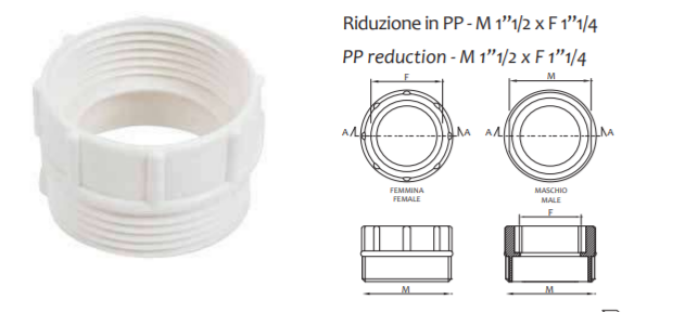 Преход за тоалетно казанче от PVC. С резба, която гарантира надеждност на връзката без течове. Лесен и бърз монтаж без инструменти – с женски на 1“1/4 и мъжки на 1“1/2.