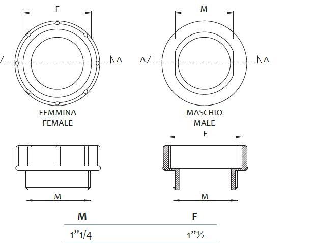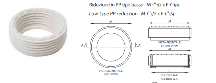 Нисък преход за тоалетно казанче – пластмасов. Лесен и бърз монтаж без инструменти – с женски на 1“1/4 и мъжки на 1“1/2.