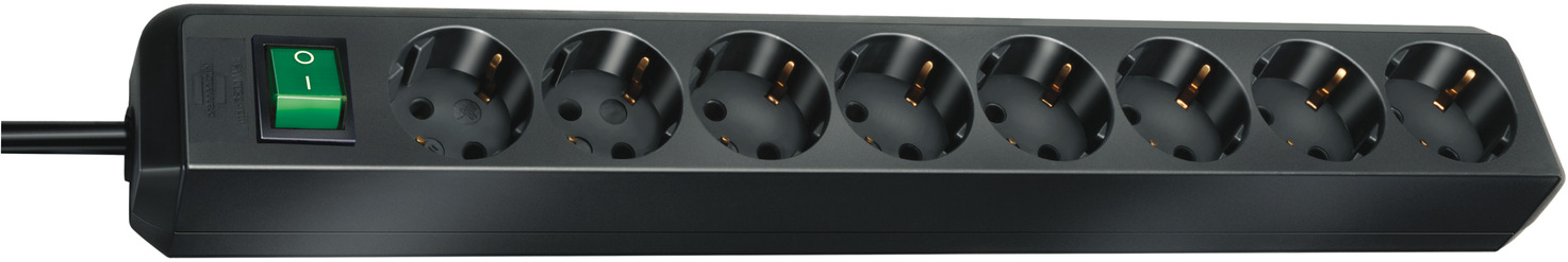 Разклонител с 8 гнезда тип шуко (2P+E), светещ двуполюсен ON/FF ключ и 3 метра кабел (H05VV-F 3G1,5). Предлага се в три цвята: бял, черен и светло сив. Контакти с вградена детска защита, разположени под 45° за лесна употреба на ъглови щепсели. Подходящ за домашна и офис употреба.