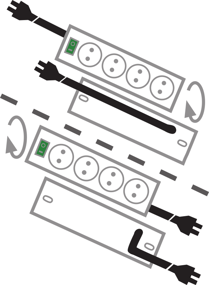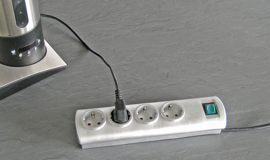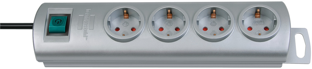 Разклонител в сребрист цвят с ключ, с четири гнезда, разположени под 90° . Предлагат се с дължина на кабела 1.5м и светещ 2-полюсен ONN/OFF ключ. Вградена детска защита на контактите. Подходящ за жилищни и офис помещения. Ергономичен дизайн, позволяващ удобен достъп до мрежовото захранване.