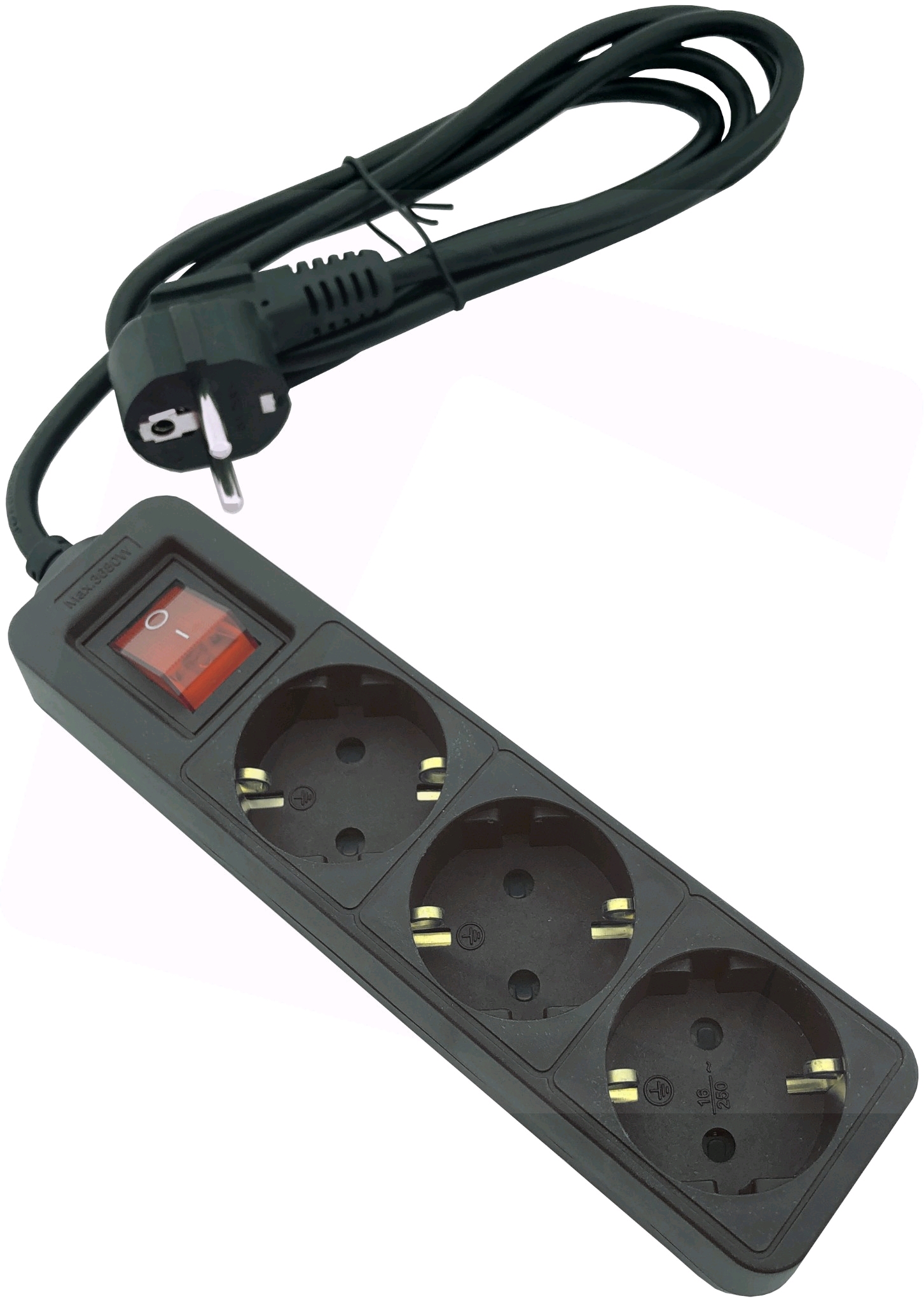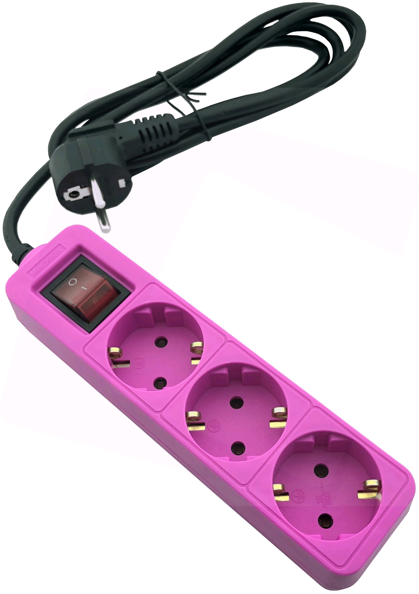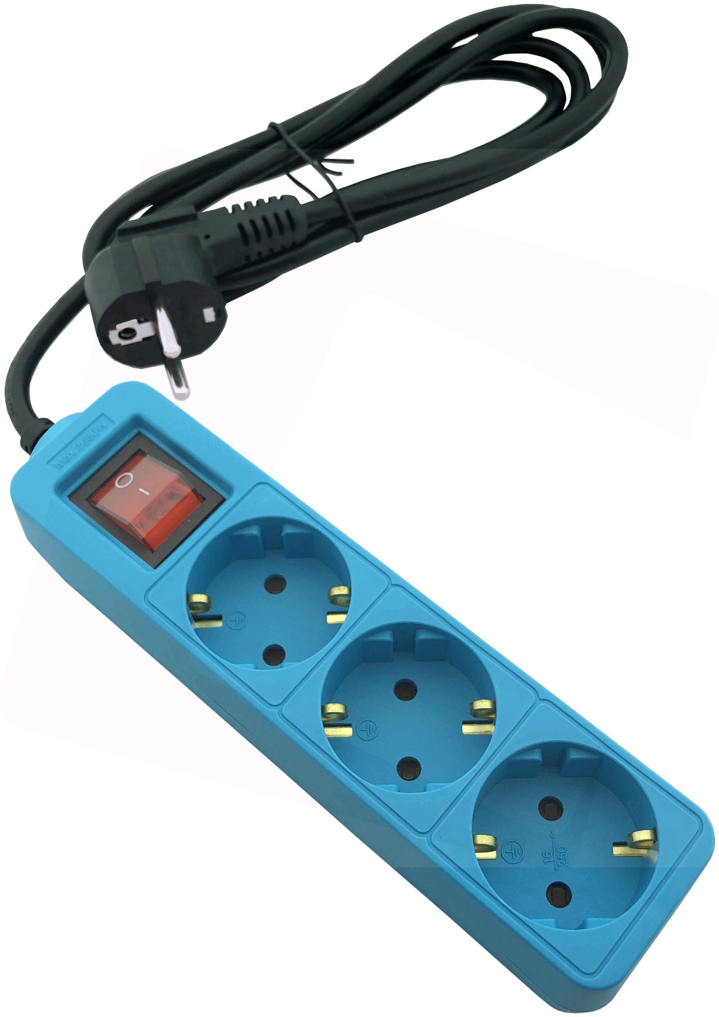 Разклонител с три гнезда с ключ и дължина на кабела 1.5м. Предлагат се 4 различни цвята.