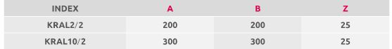 | Размер | 200/200/25 KRAL2/2, 300/300/25 KRAL10/2, 400/400/25 KRAL12/2 |