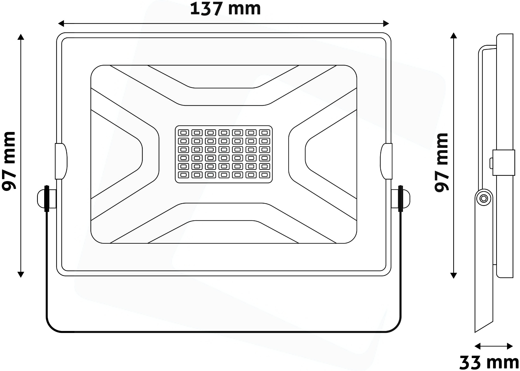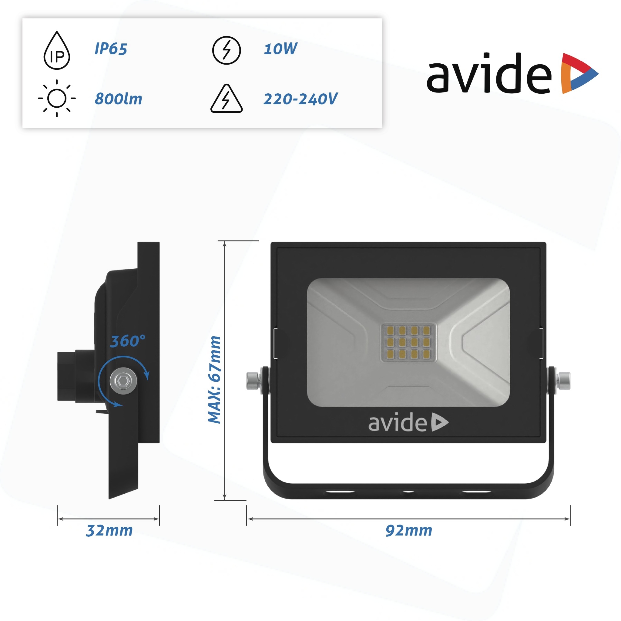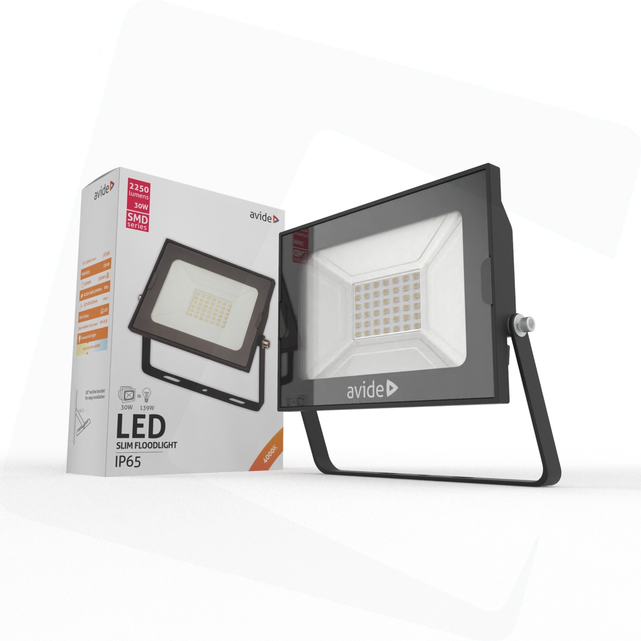 SMD LED прожекторите Avide могат да осигурят същатата мощност на осветление като традиционните халогенни лампи, но с много по-ниска консумация на електроенергия. LED прожекторите осигуряват до 20 пъти по-дълъг живот в сравнение с продукти, използващи традиционни крушки. Степента на влагозащита е IP 65, което ги прави идеални, за употреба на открито. На ръба на прожектора има подвижна метална рамка, така че можете да го фиксирате на земята, стената или дори тавана. След монтажа, ъгълът може да се регулира по всяко време, като по този начин ще се осигури светлина, от която се нуждаете, точно там, където имате нужда. LED прожекторите се продават с накрайник на кабела с дължина 30 см, а щепселът не е включен в комплекта! Продуктът може да бъде инсталиран само от професионалист! Всяка операция с включено захранване крие опасност от токов удар. Прожекторите Avide SMD се предлагат в неутрално бяло (NW).