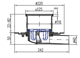 Роговият сифон е предназначен за вътрешни и външни инсталации. Опаковката включва воден разтвор и суха клапа – против миризми. Изработен от полипропилен и неръждаема стомана DIN 1.4301. Товароносимост K3 (300 кг). Температурна устойчивост до 90 ° C. Тестван в съответствие с EN 1253. Рамка от неръждаема стомана.