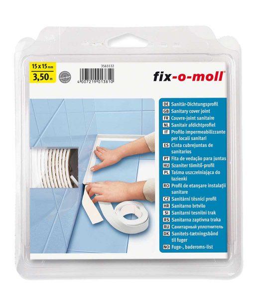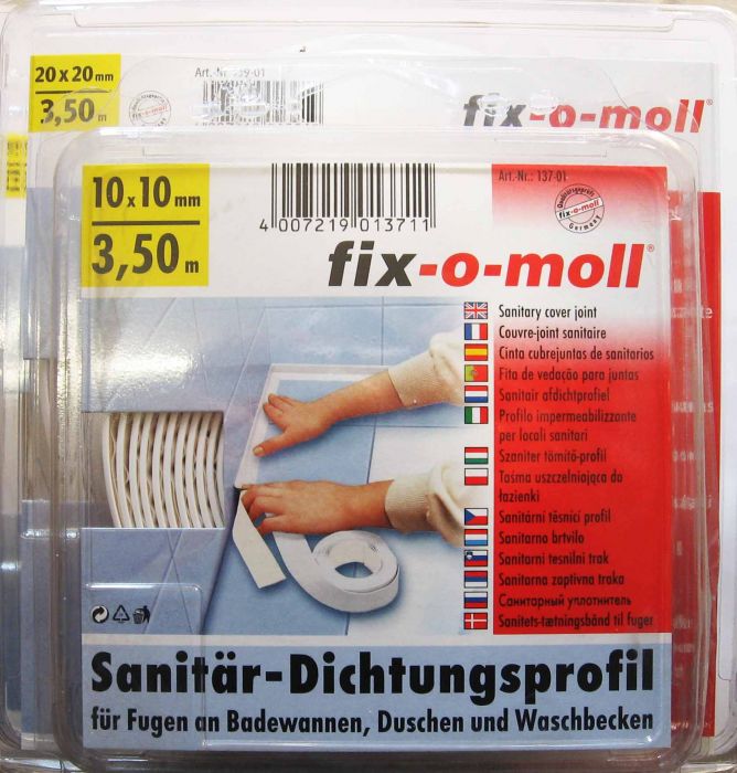 Силиконово уплътнение за баня 3.5м, което се използва за фугата, която се образува между ваната и стена или мивката и стената (подходящо и за душкабини). То има декоративна, коригираща и уплътняваща функция, като изолира фугата от вода, предпазва от развитие на микроорганизми (при попаднала вода във фугата), скрива недостатъци, кривини и неравностите на правия ъгъл между стената и ваната (мивката или душкабината). Силиконовото уплътнение за баня има фабрична симетрична сгъвка на мястото, където образува прав ъгъл при залепване и мека структура на лентата, която осигурява удобство при работа с нея. При демонтаж не оставя следи върху стената и се оразмерява според дължината на фугата, който трябва да се завърши – реже се директно с ножица. Цветът на уплътнението е бял. Предлага се в следнитите ширини 10х10, 15х15, 20х20 мм.