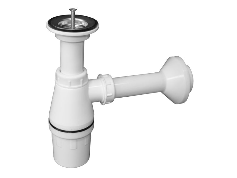 Бутилков сифон без преливник за мивка 1, 1/4” /пластмасов/ с твърда връзка. Предназначен е за монтиране към фаянсови мивки и мивки от неръждаема стомана, пластмаса и други материали, без отвор за преливник. Размер на отточната тръба ф32 и ф40.