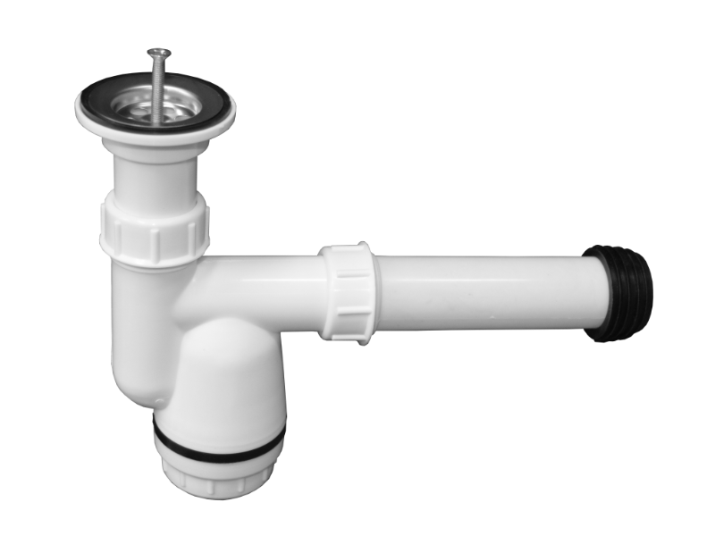 Сифон без преливник за мивка 1, 1/2 “ /пластмасов/. Предназначен е за монтиране към фаянсови мивки и мивки от неръждаема стомана, пластмаса и други материали, без отвор за преливник .