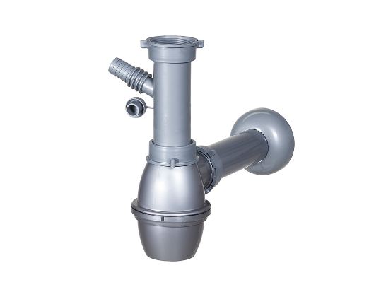 Сифон без преливник за мивка 1, 1/2 “ /пластмасов/ с отклонение за пералня. Предназначен е за монтиране към фаянсови мивки и мивки от неръждаема стомана, пластмаса и други материали, без отвор за преливник.