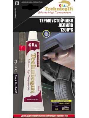 Огнеупорно лепило на базата на силикати. Предназначено е за монтаж и ремонт на системи, отвеждащи отпадъчни газове, печки, камини, керамични и метални димоотводни системи, отвеждащи изгорели газове с температура по – висока от 1000 С