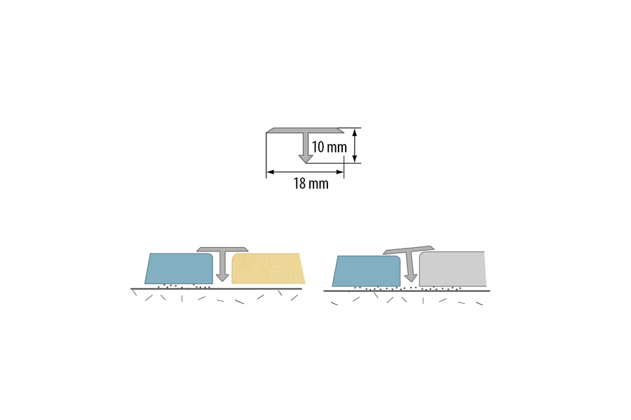 Този профил е предназначен за свързване на повърхности, покрити с керамични плочки, дърво или ламинати. Неговата „Т” форма позволява да се маскират пролуки с ширина до няколко милиметра (в зависимост от ширината на профила). Освен това позволява изравняване на малки разлики във височината на основата.