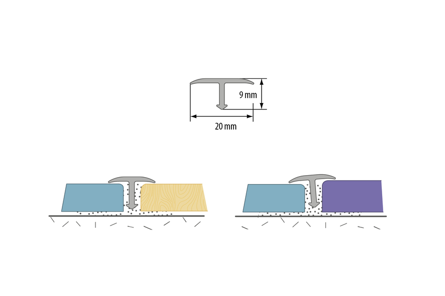 Този профил е предназначен за свързване на повърхности, покрити с керамични плочки, дърво или ламинати. Неговата „Т” форма позволява да се маскират пролуки с ширина до няколко милиметра (в зависимост от ширината на профила). Освен това позволява изравняване на малки разлики във височината на основата.