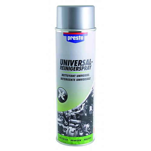 Универсален почистващ спрей е многофункционално средство подходящо за почистването на упорити замърсявания и обезмасляването на части от метал и множество пластмаси. Не оставя следи след употребата му.
