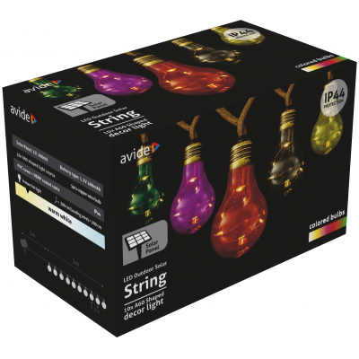 Avide Цветни соларни лампи-верижка с кабел 5m от въже, 10 многоцветни глобуса от медна тел, 50 микро LED, IP44, 1,2V