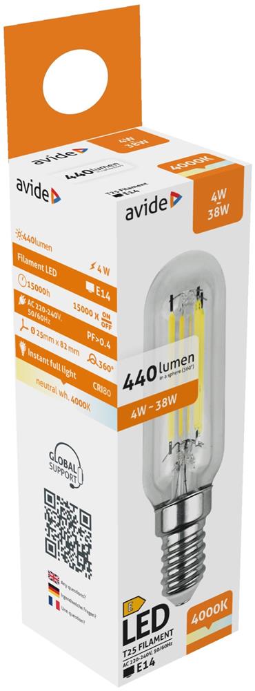 Avide Filament T25 E14 4w,4000k ablft25nw-4w