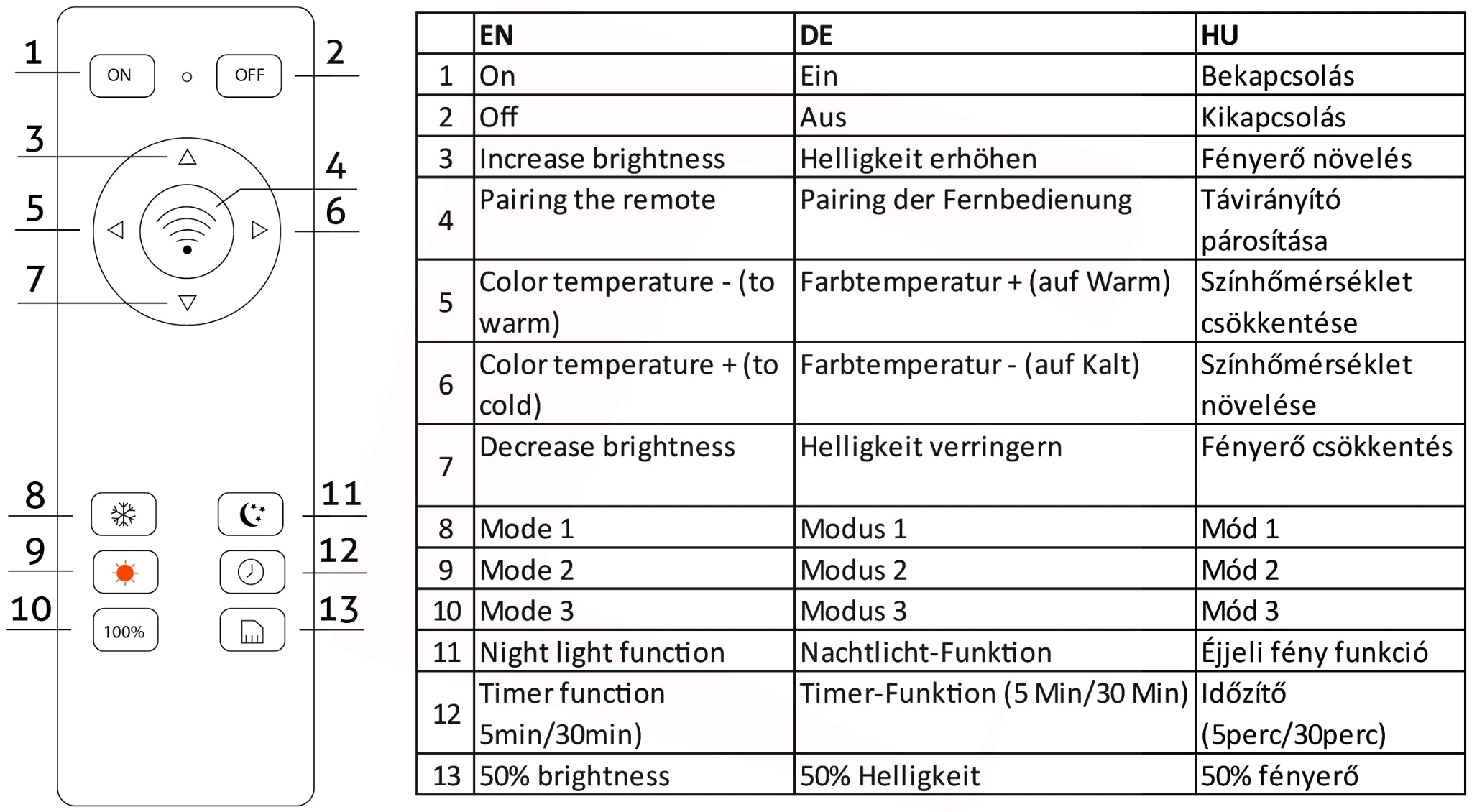 Дизайнерска лампа Yvette със 3 режима на осветление (различна сила на светлината), функция за нощно осветление, функция – памет, таймер през 5 мин.(30 мин /60 мин) и регулиране на яркостта. С дистанционно управление