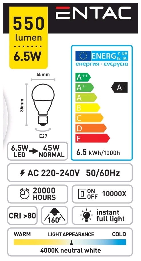 Топла ww 3000k abbmg27ww-7w, Неутрална nw 4000k abbmg27nw-7w, Студена cw 6400k abbmg27cw-7w