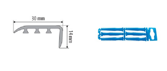 L- образената PVC лайсна е покрита с много устойчив ламинат с висока абразивна устойчивост.Спомагат за естетичното свързване на различни видове повърхности. Ъгълът има двойна система за сглобяване на базата на фиксиращи дюбели и полимерно лепило. Дюбелът стабилизира ъгъла към основата, докато лепилото затруднява проникването на прах и влага.. Предлага се в различни дървесни цветове с дължина 0.90м и ширина 30х14мм.