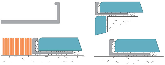 Тези профили се използват за защита на ъгли, положени с плочки, особено когато те са свързани с други видове повърхност, напр. балатум, килим, ламинат и др. Може да се ползва и като рамка, разделяща различните видове настилки. Специално предимство на тези профили е възможността да се прилагат и за арки, т.е. могат да се огъват.