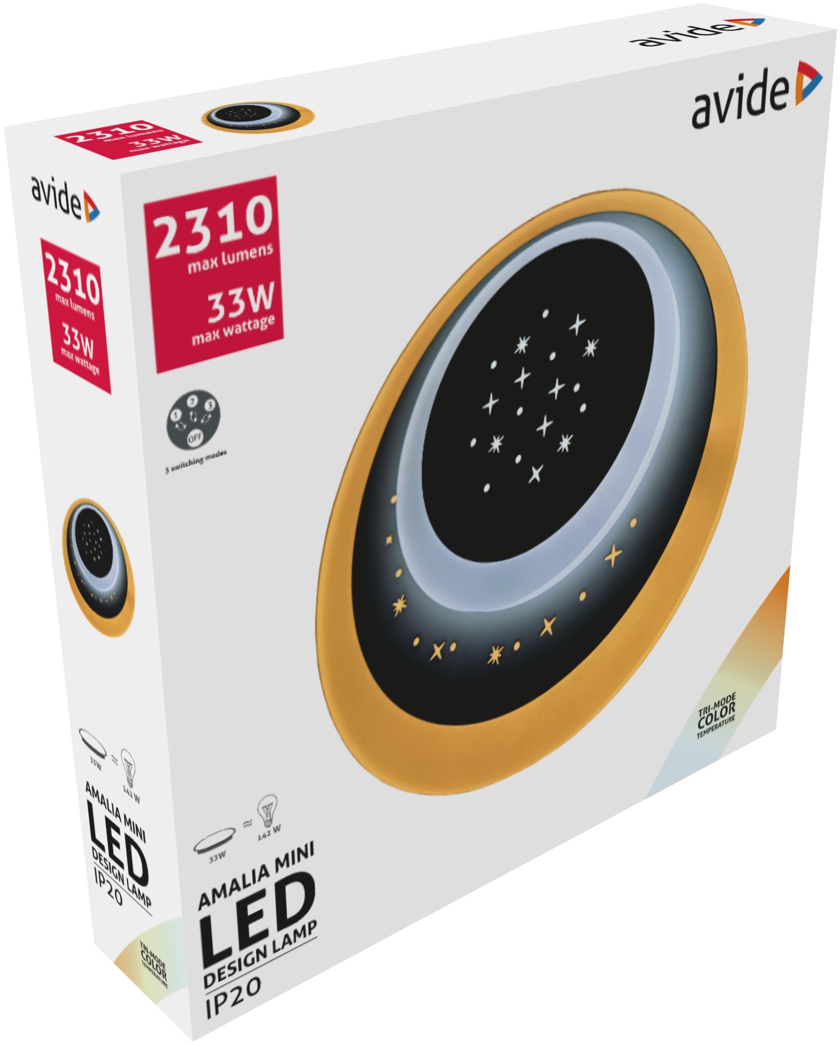 Дизайнерска лампа AMALIA mini със 3 режима на осветление (различна сила на светлината), който се променят от ключа за лампата.