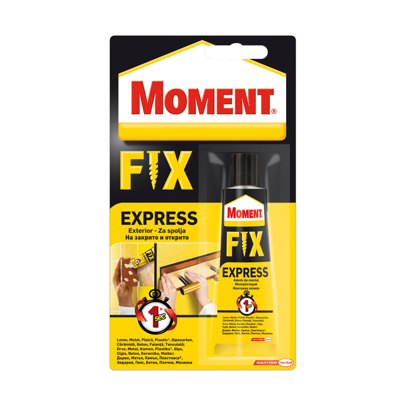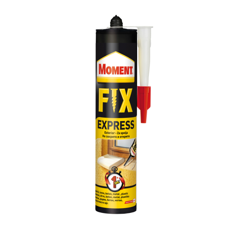Професионално монтажно лепило на база разтворител, което моментално свързва без изчакване. Moment Express Fix PL600 e предназначено за лепене на дърво, зидария, керамика, бетон, гипсокартон, ПДЧ, шперплат, камък, МDF, твърдо PVC, пластмаса и др.Идеално за монтиране на первази, кантове и лайсни; дървени и ПДЧ плоскости, гипсокартонени и коркови плоскости, гипсови корнизи и орнаменти, облицовъчни ленти и обшивки (от дърво и метал); канали за кабели; кухненско обзавеждане и аксесоари; табелки с адреси и номера и много други приложения.